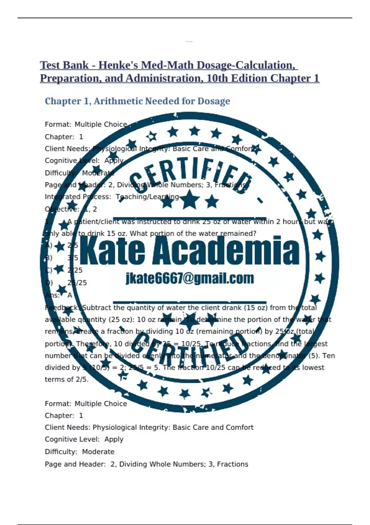 Test Bank - Henke's Med-Math Dosage-Calculation,