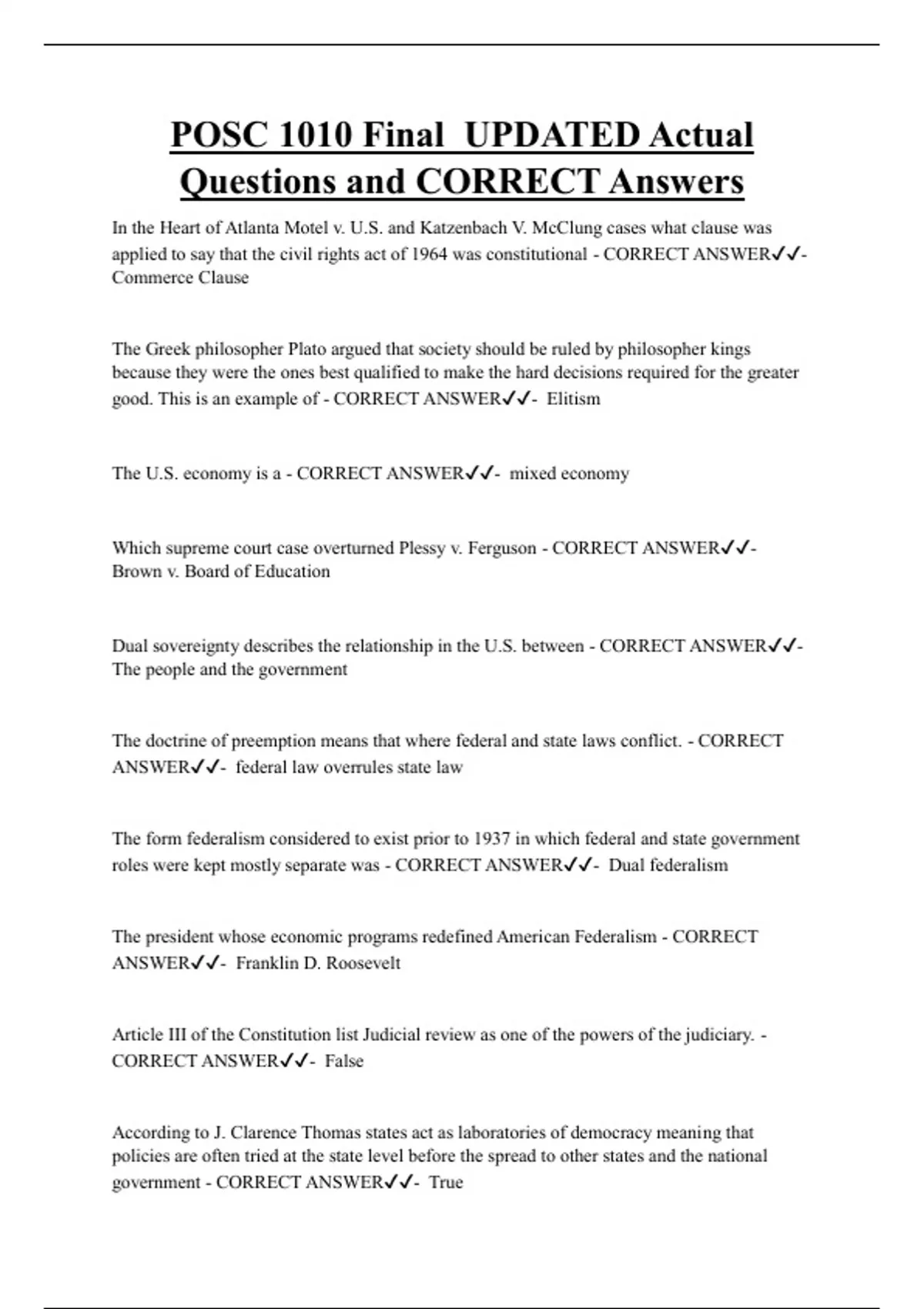 Questions and CORRECT Answers