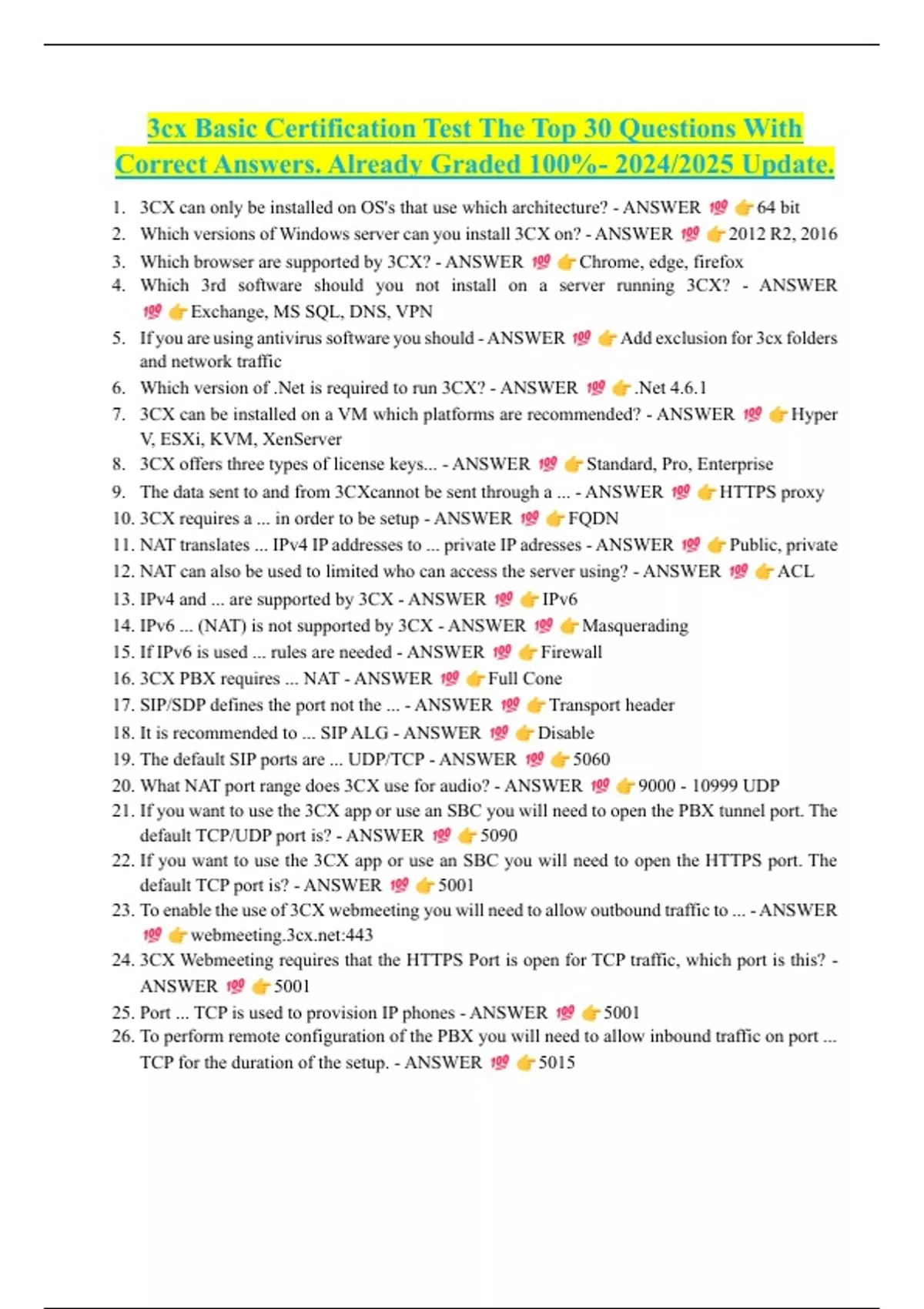 20. What NAT port range does 3CX use for audio? - ANSWER 9000 - 10999 UDP