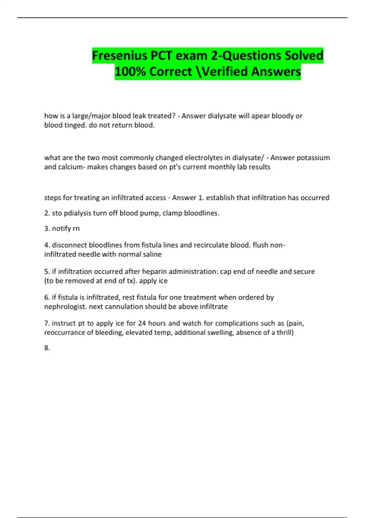 Fresenius PCT exam 2-Questions Solved
