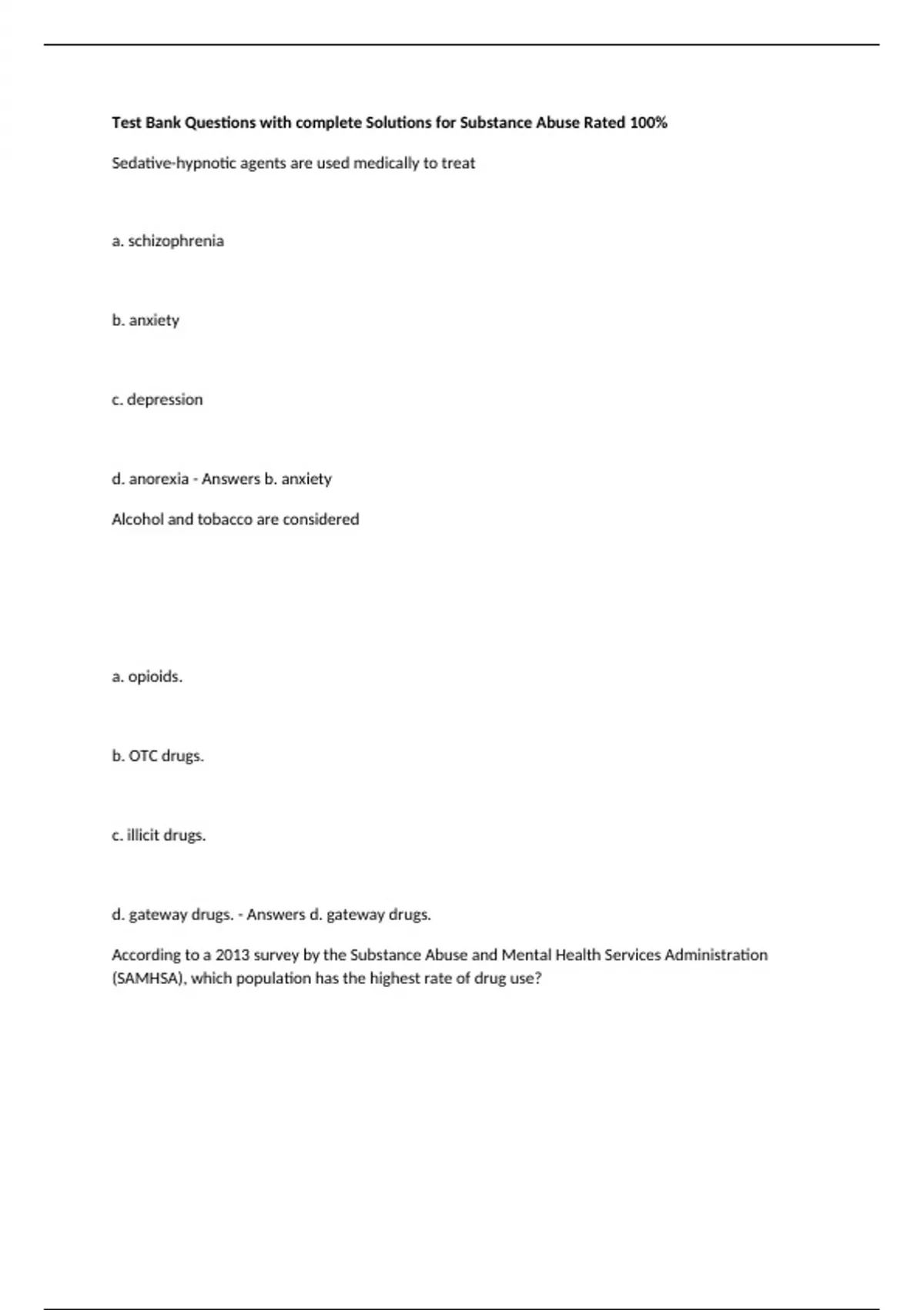 d. gateway drugs. - Answers d. gateway drugs.