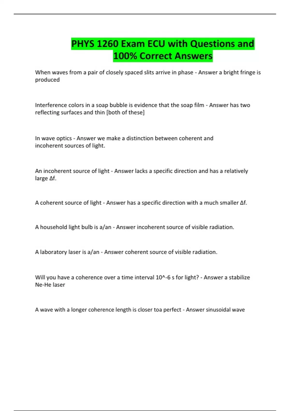 A wave with a longer coherence length is closer toa perfect - Answer sinusoidal wave