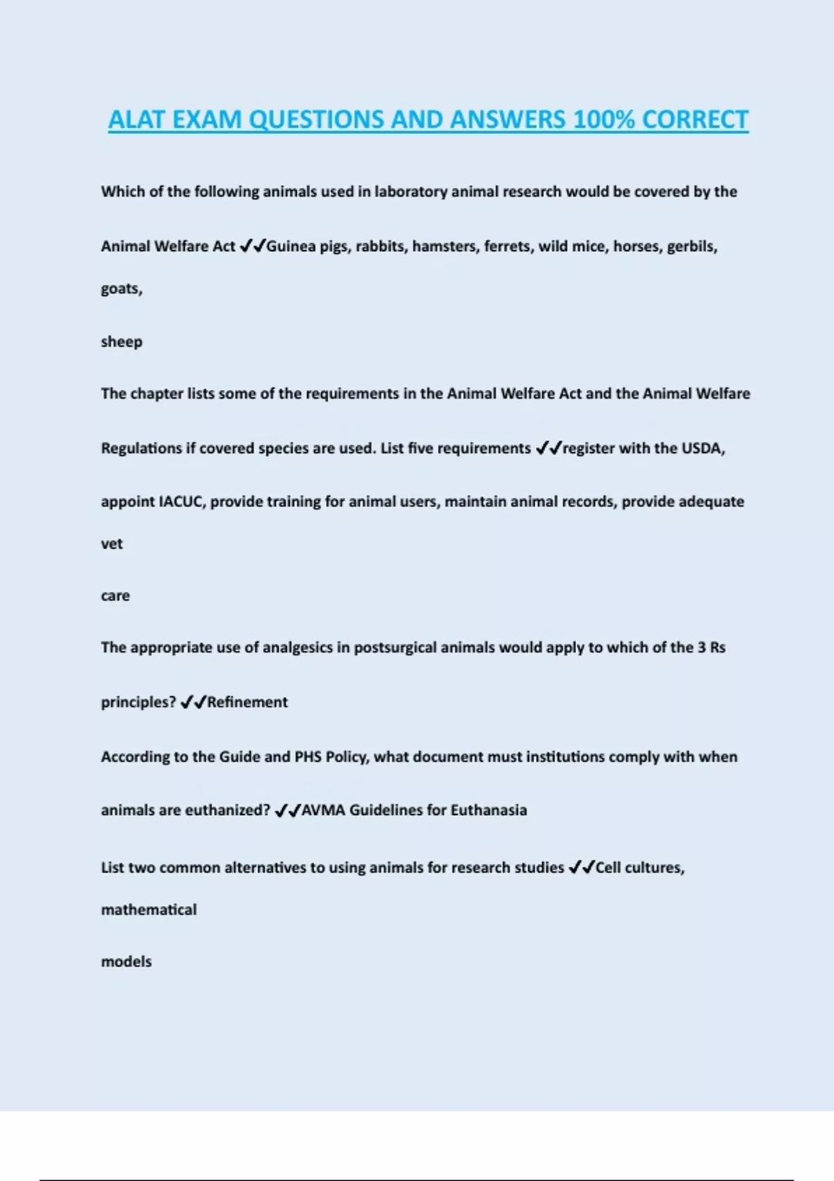 exam ✔✔The Guide for the Care and Use of Laboratory Animals