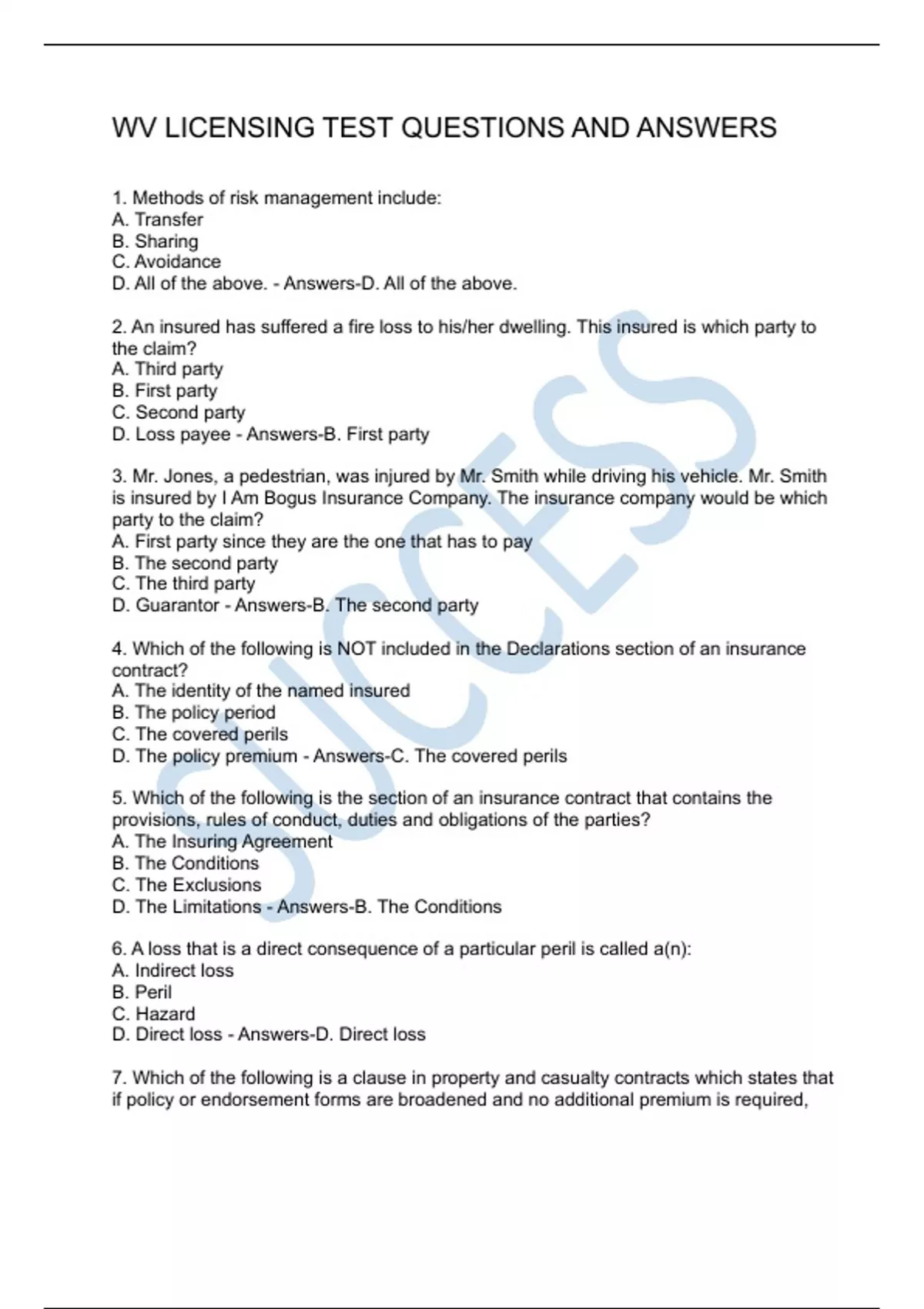 WV LICENSING TEST QUESTIONS AND ANSWERS