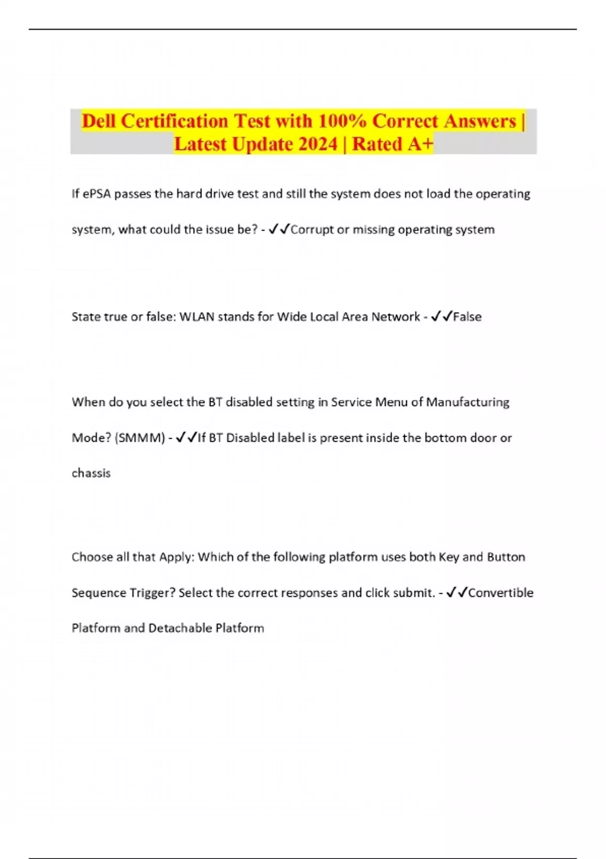Dell Certification Test with 100% Correct Answers | Latest Update 2024 | Rated A+