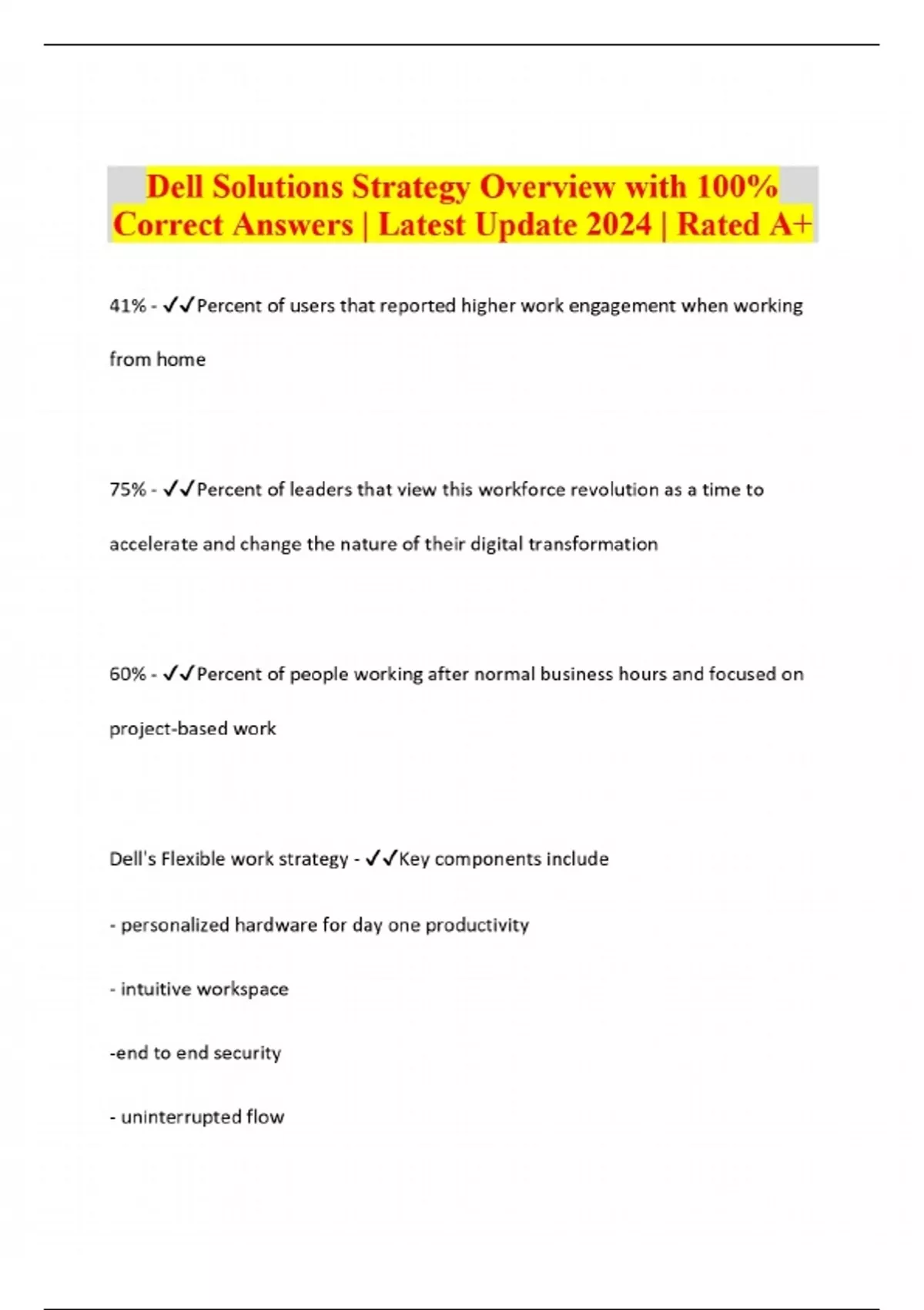Dell Solutions Strategy Overview with 100% Correct Answers | Latest Update 2024 | Rated A+