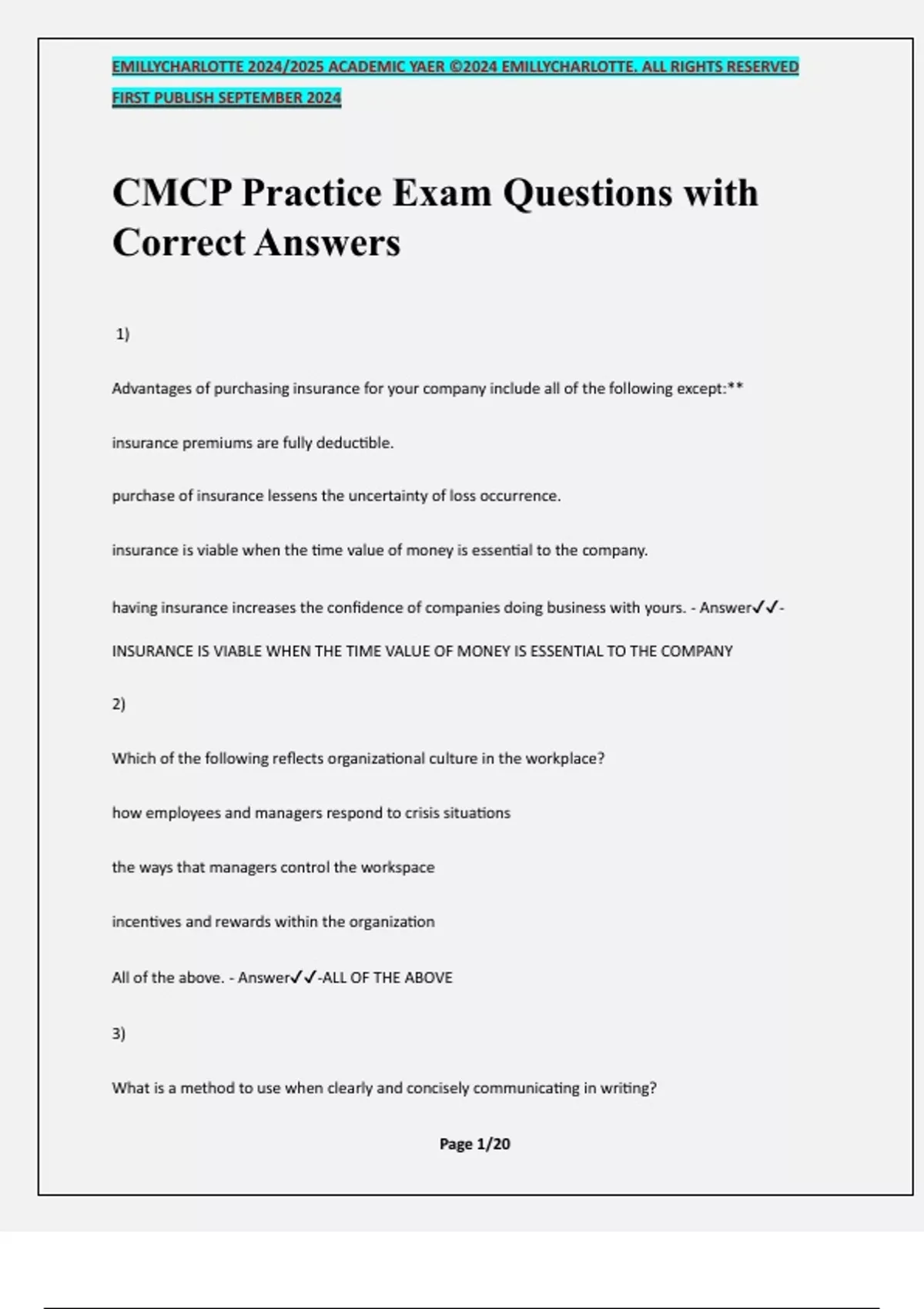 CMCP Practice Exam Questions with