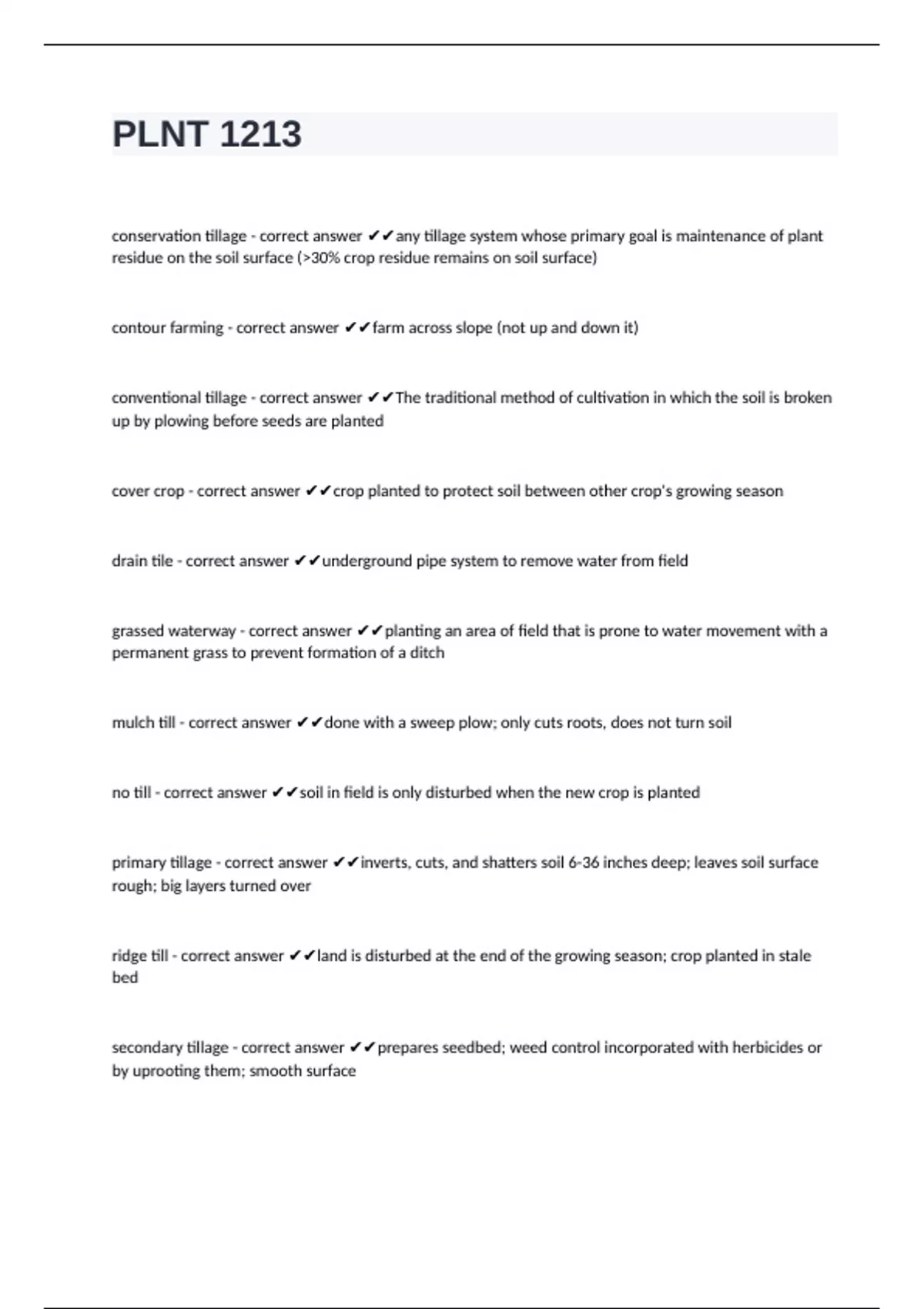 conservation tillage - correct answer ✔✔any tillage system whose primary goal is maintenance of plant