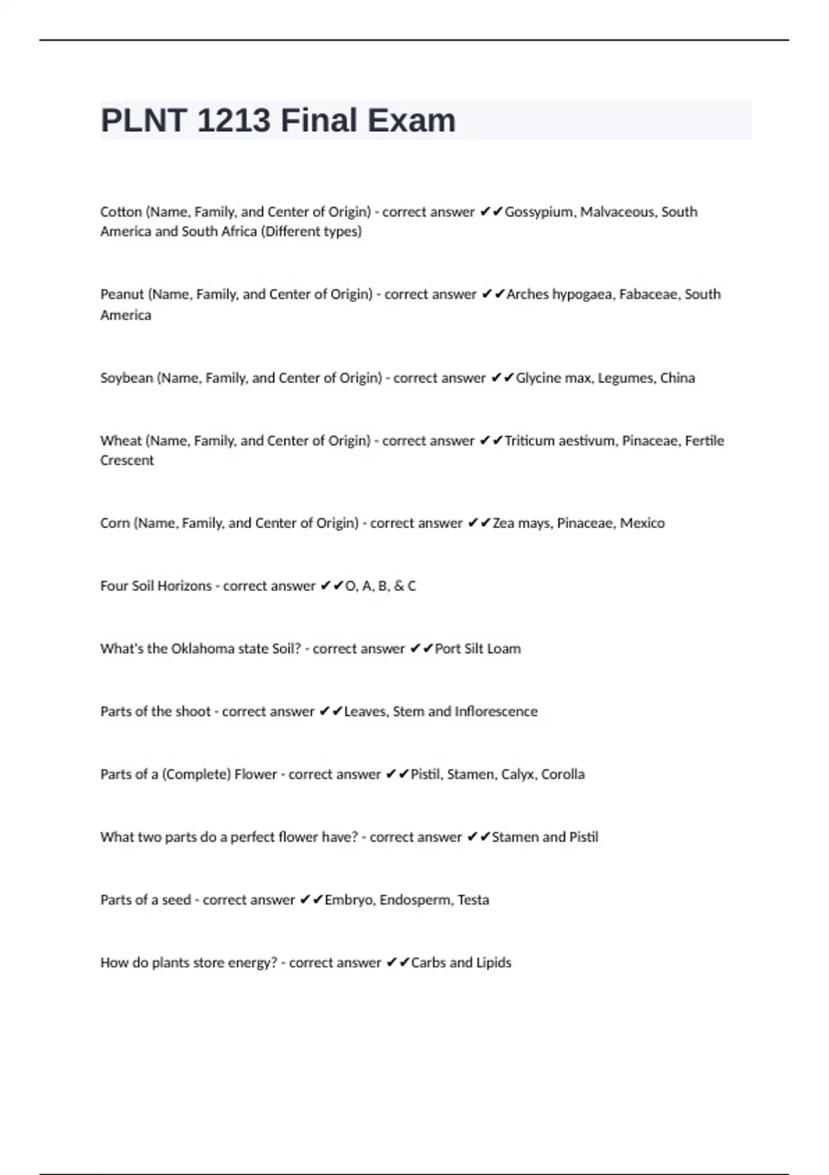 PLNT 1213 Final Exam questions n correct answers graded A+ passed