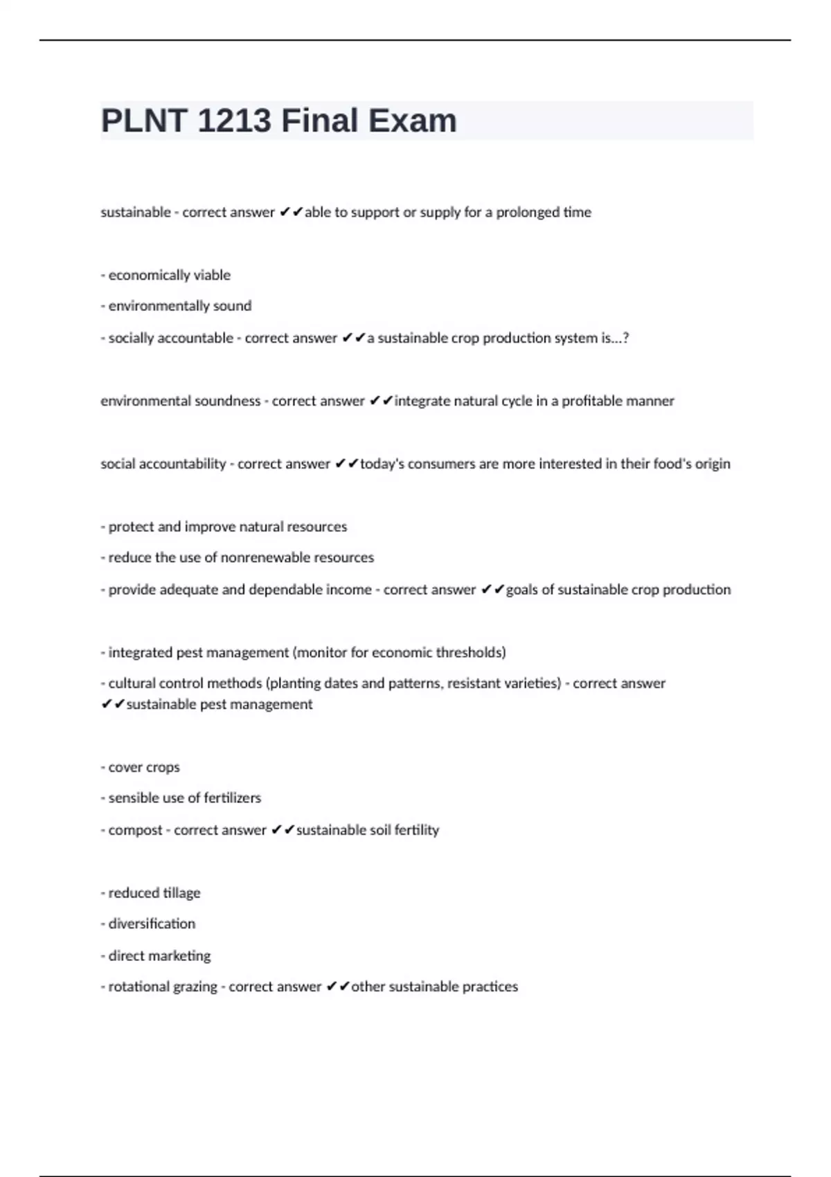 - socially accountable - correct answer ✔✔a sustainable crop production system is...?