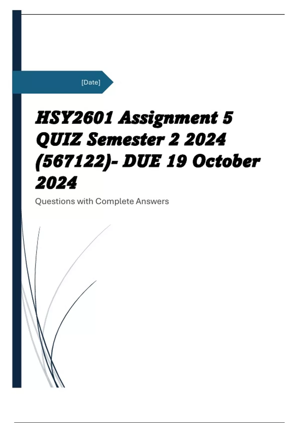 , HSY2601 Assignment 5 QUIZ Semester 2 2024 (567122)- DUE 19 October