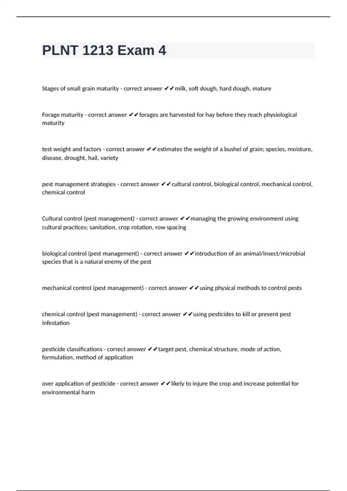 PLNT 1213 Exam 4 questions with complete solutions graded A+