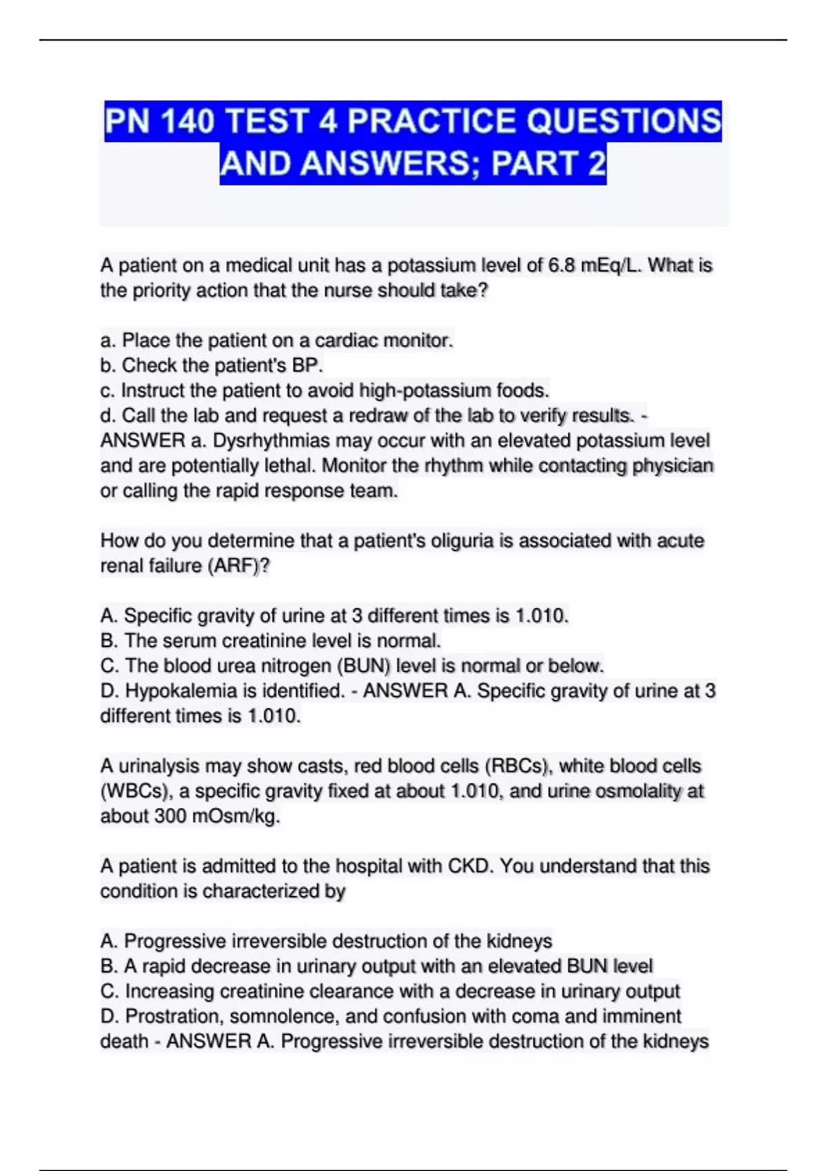 PN 140 TEST 4 PRACTICE QUESTIONS AND ANSWERS; PART 2...
