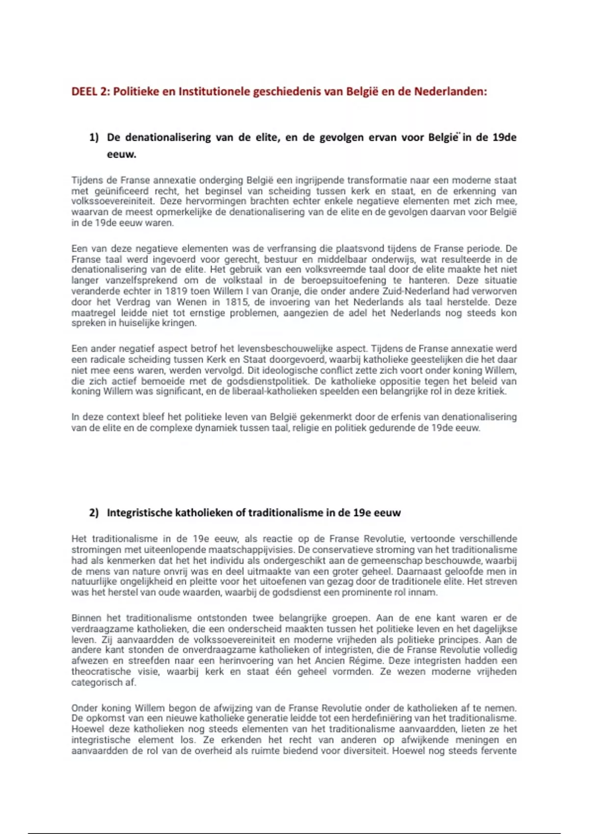 DEEL 2: Politieke en Institutionele geschiedenis van België en de Nederlanden: