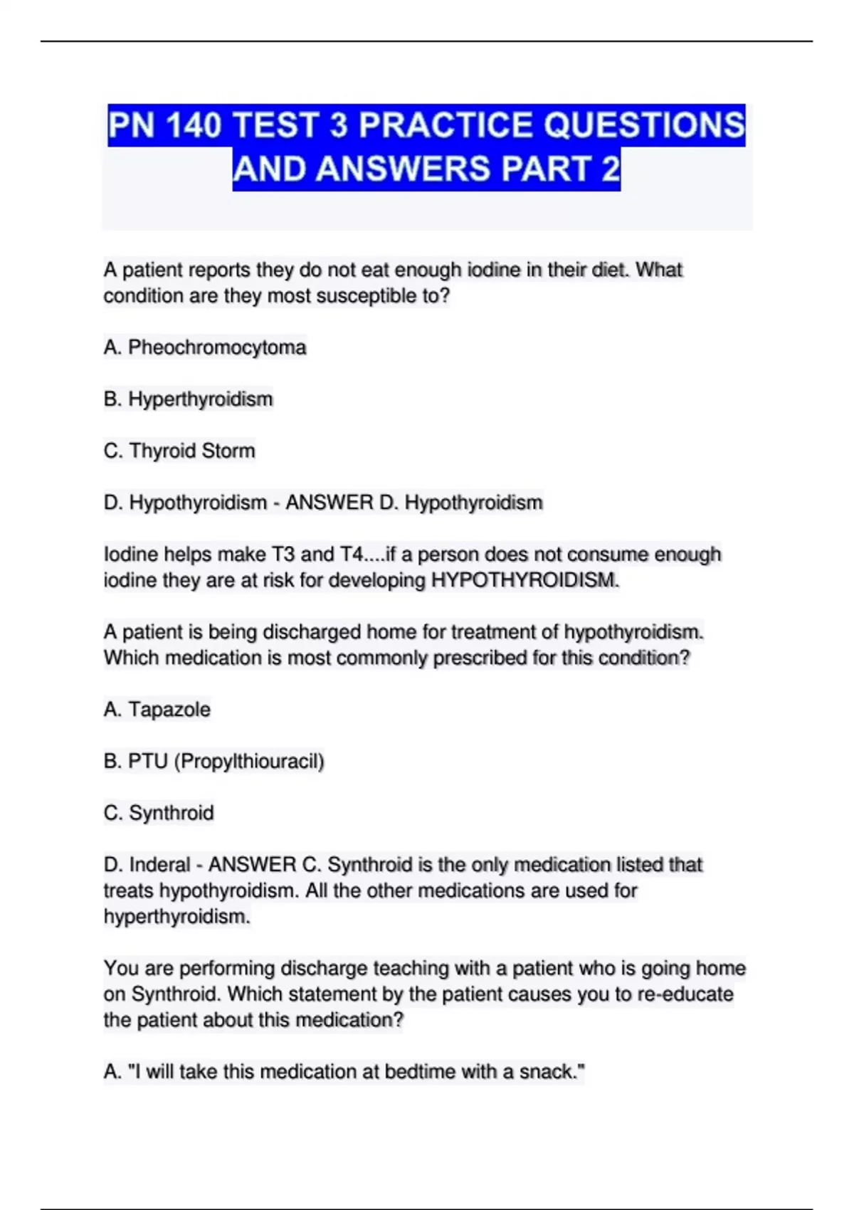 D. Synthroid - ANSWER A. Propylthiouracil (PTU)