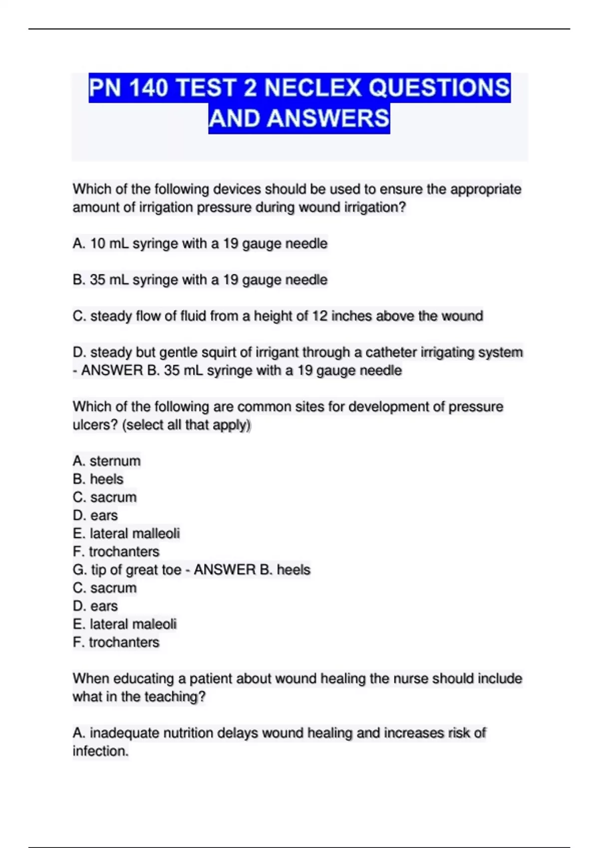speeds up wound healing - ANSWER A. inadequate nutrition delays