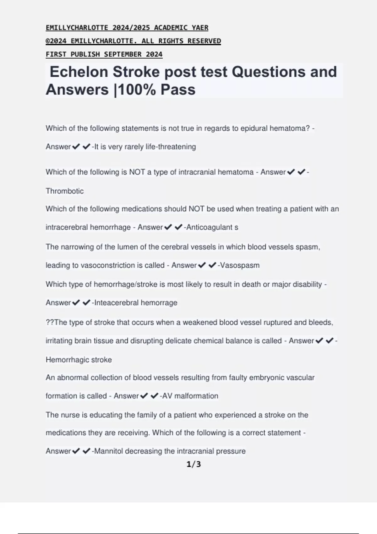 Echelon Stroke post test Questions and