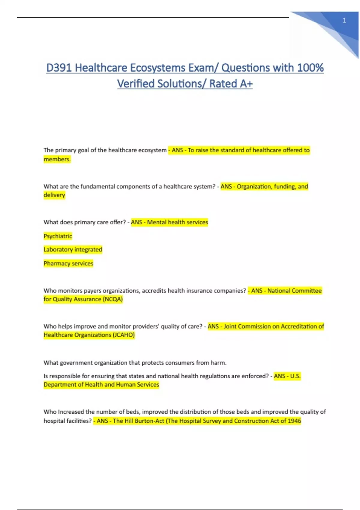 D391 Healthcare Ecosystems Exam/ Questions with 100%