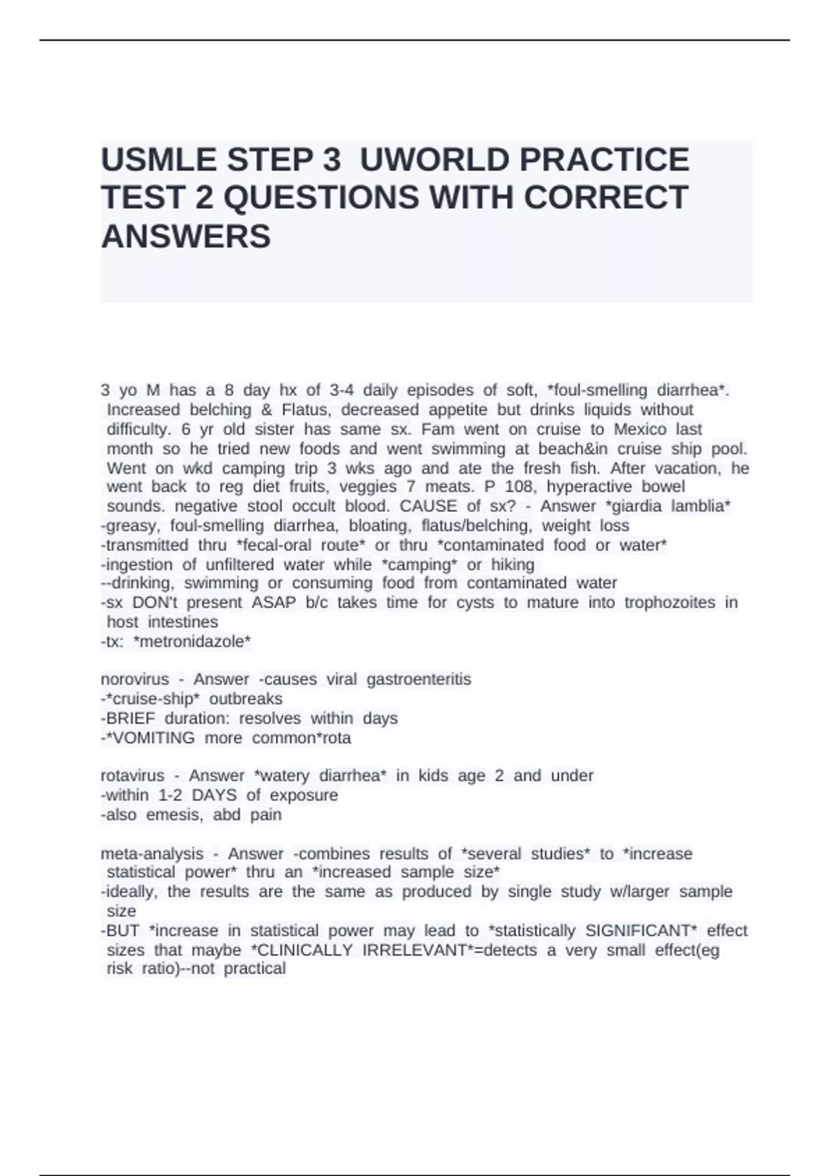 USMLE STEP 3 UWORLD PRACTICE TEST 2 QUESTIONS WITH CORRECT ANSWER1.