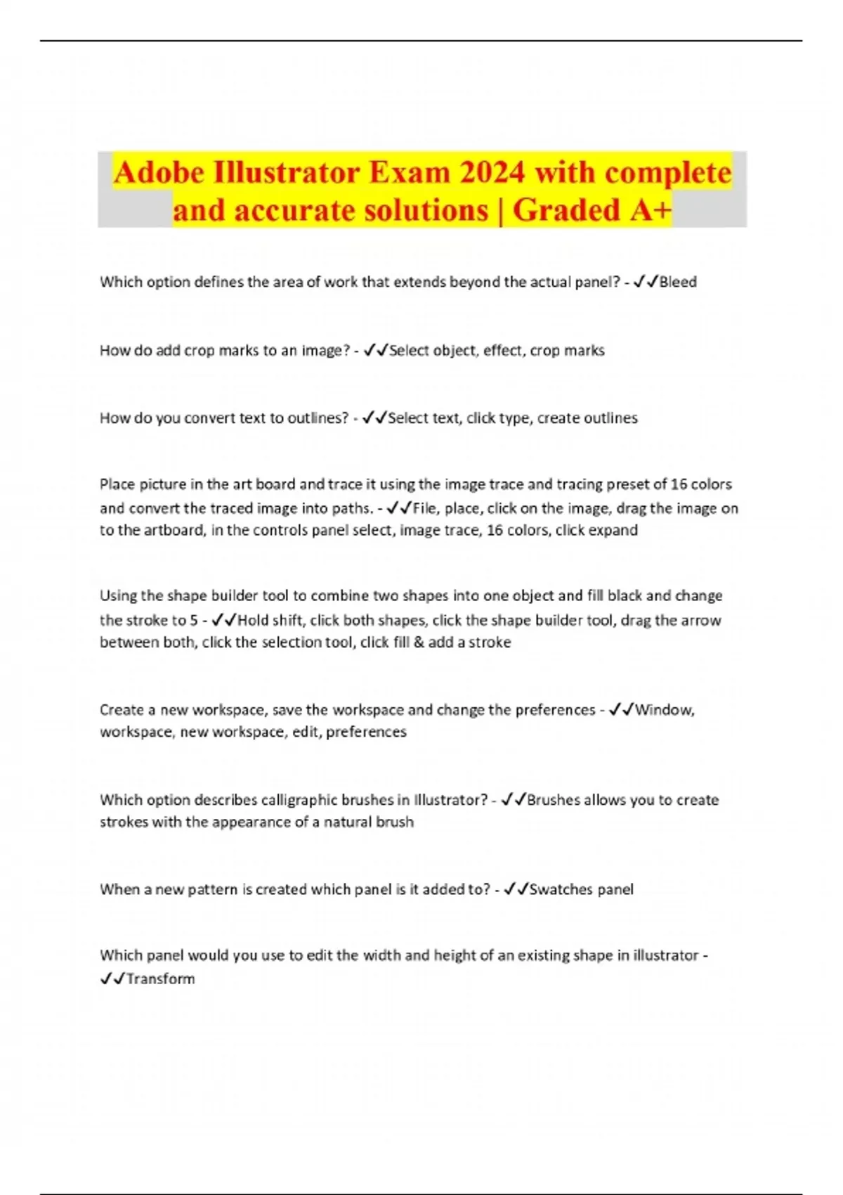 adobe illustrator exam 2024 with complete and accu