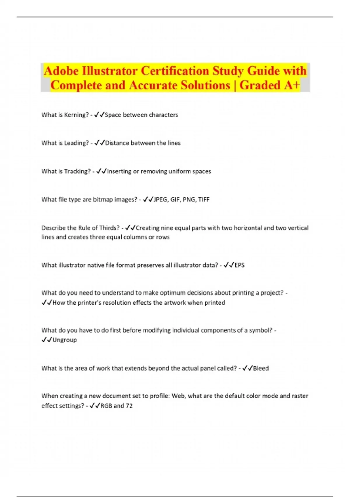Adobe Illustrator Certification Study Guide with Complete and Accurate Solutions | Graded A+