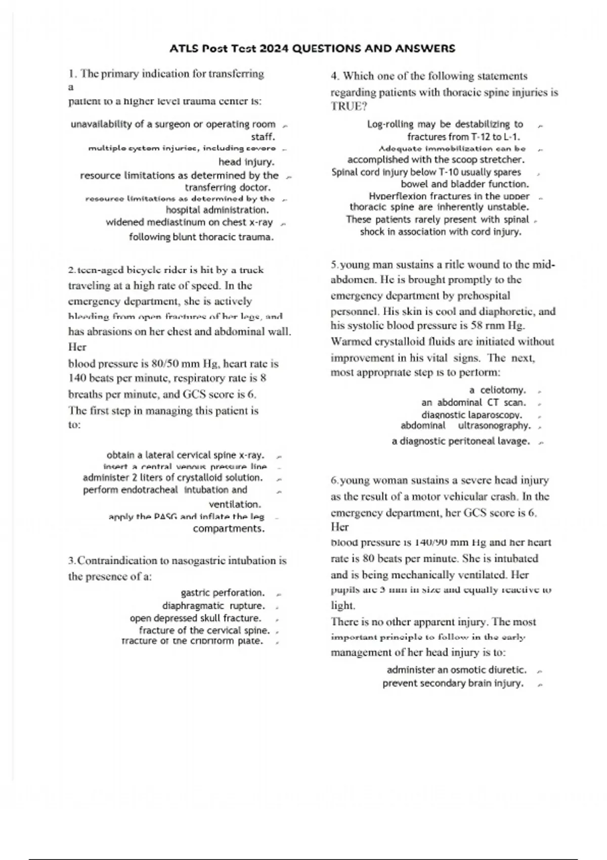 ATLS Post Test 2024 QUESTIONS AND ANSWERS