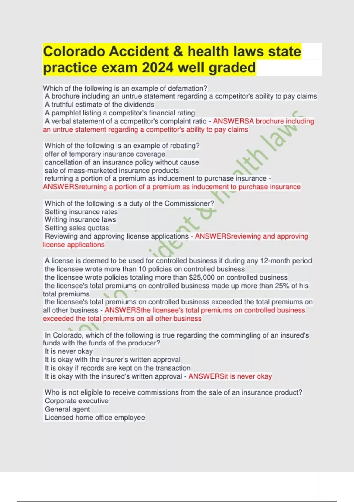 ANSWERSreturning a portion of a premium as inducement to purchase insurance
