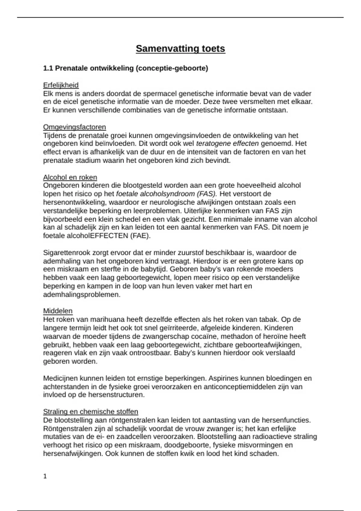 1.1 Prenatale ontwikkeling (conceptie-geboorte)