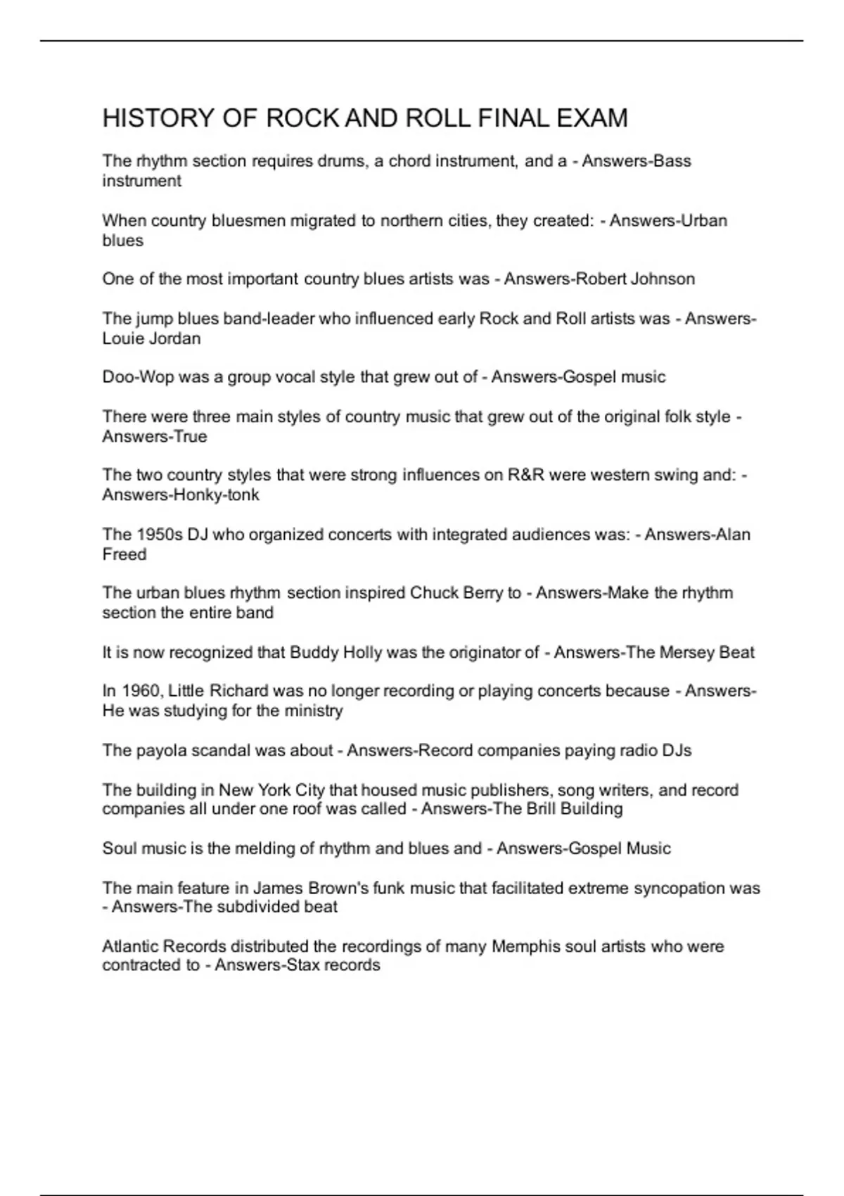 HISTORY OF ROCK AND ROLL FINAL EXAM