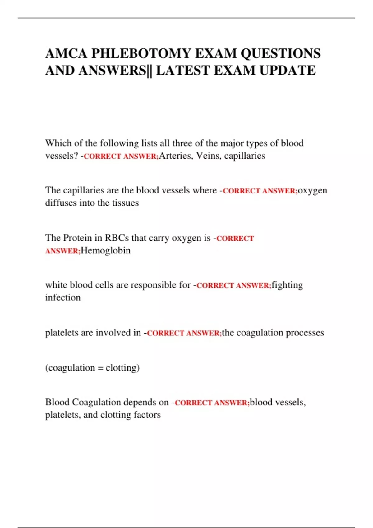 AMCA PHLEBOTOMY EXAM QUESTIONS