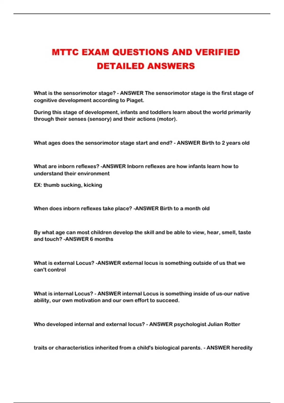 MTTC EXAM QUESTIONS AND VERIFIED