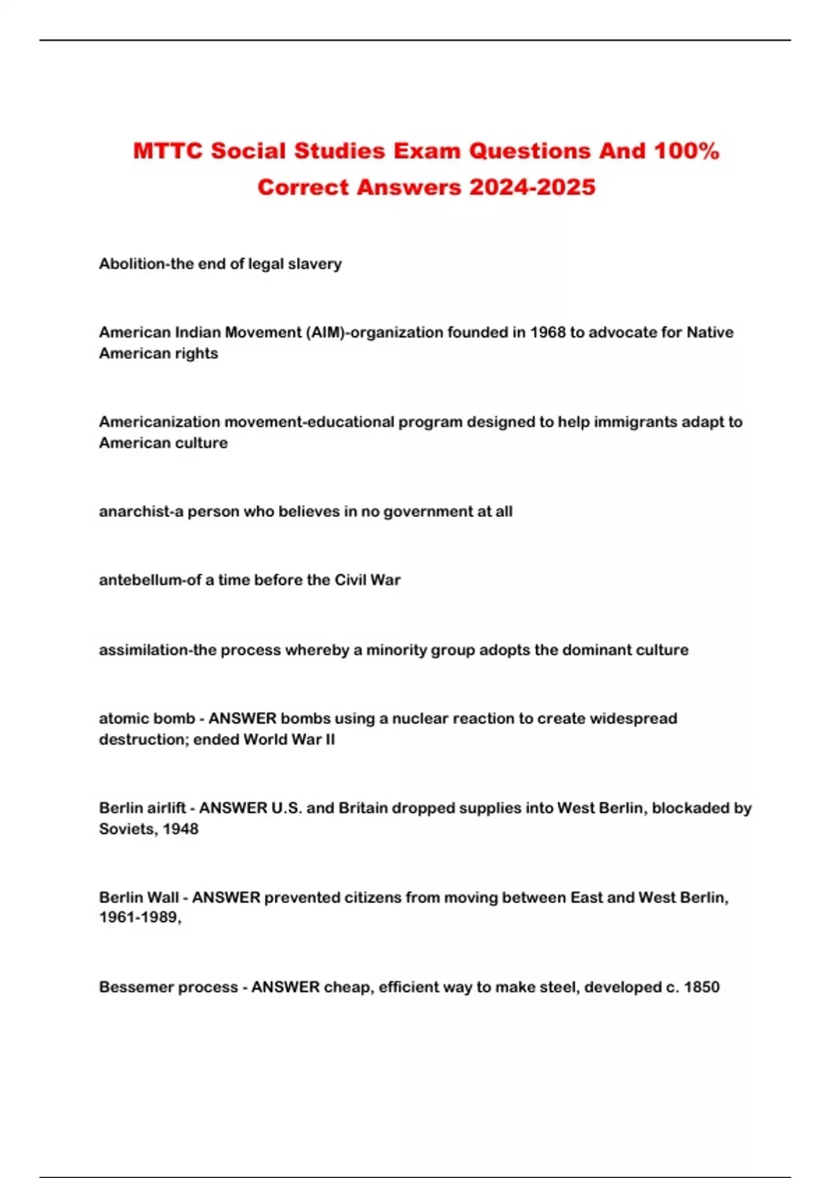 MTTC Social Studies Exam Questions And 100%