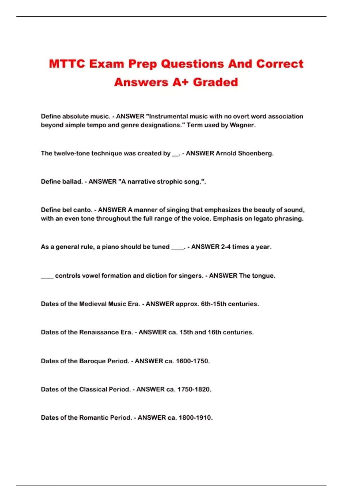 MTTC Exam Prep Questions And Correct Answers A+ Graded