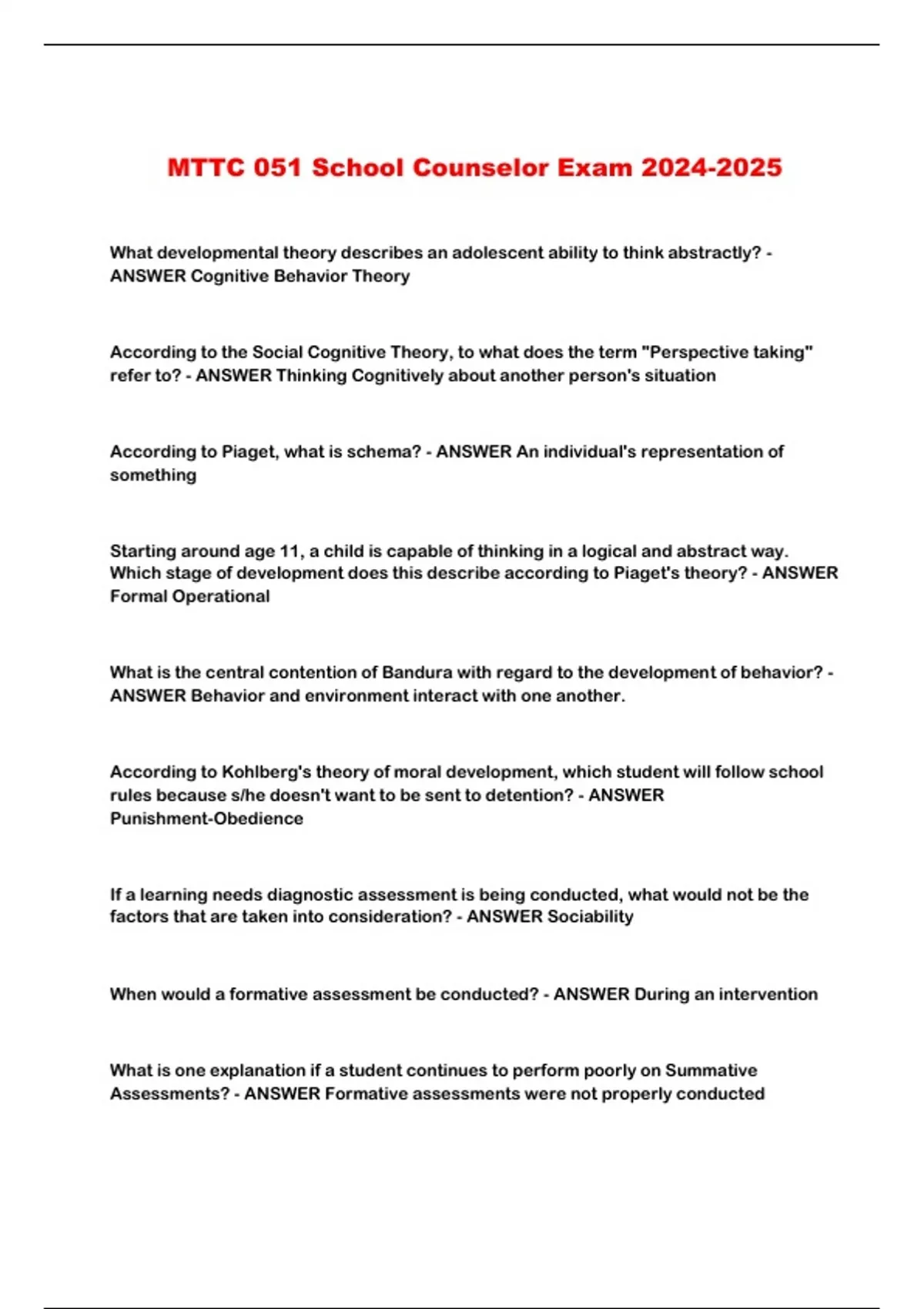 MTTC 051 School Counselor Exam 2024-2025