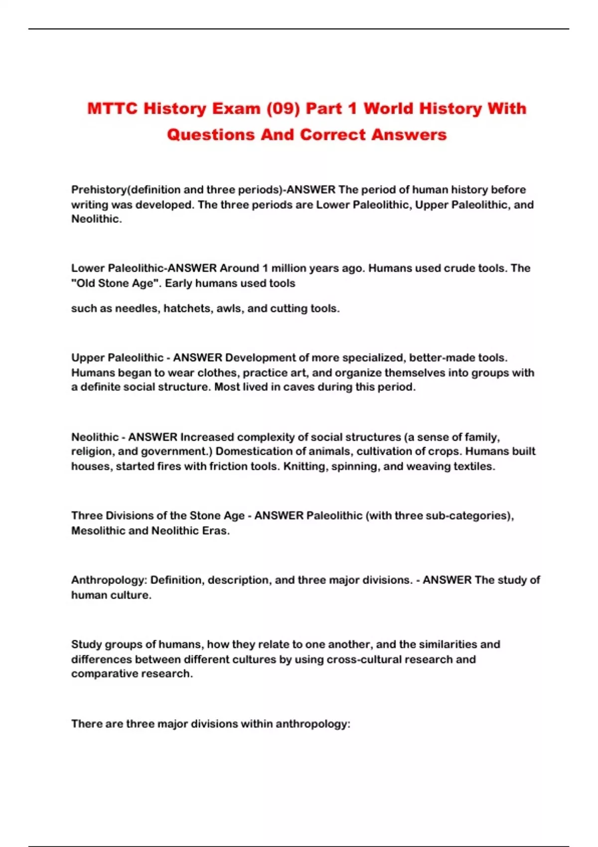 MTTC History Exam (09) Part 1 World History With