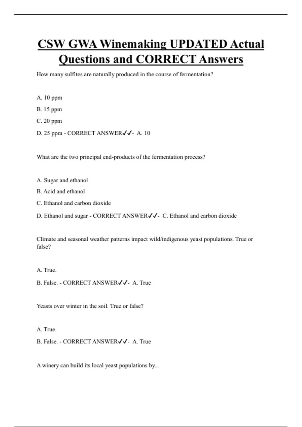 D. Ethanol and sugar - CORRECT ANSWER✔✔- C. Ethanol and carbon dioxide