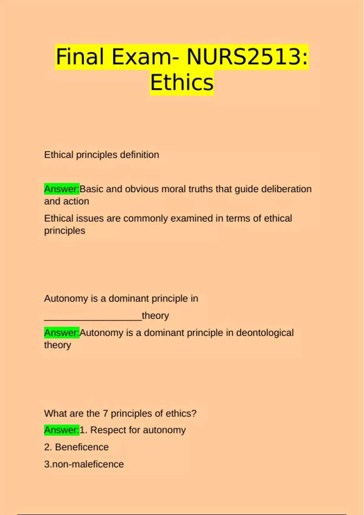 NURS2513: Ethics Exam Paper Question with Complete Solution.