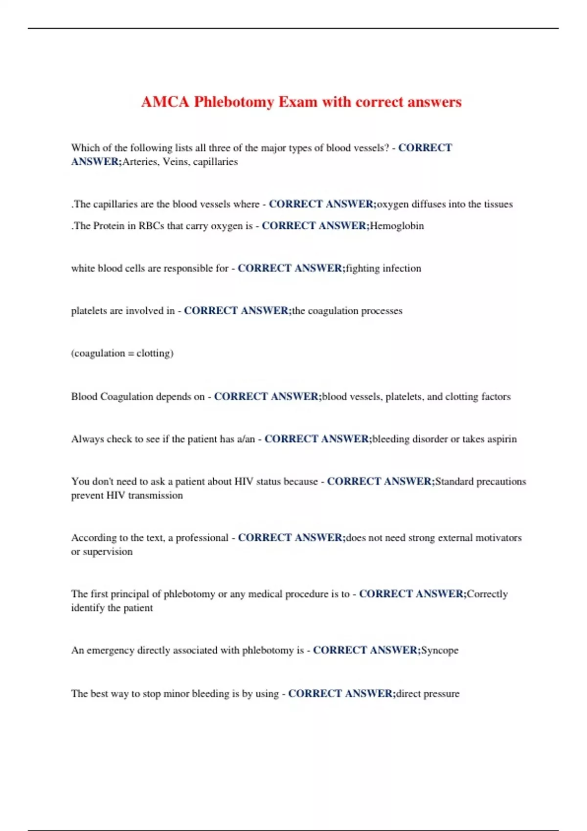 AMCA Phlebotomy Exam with correct answers
