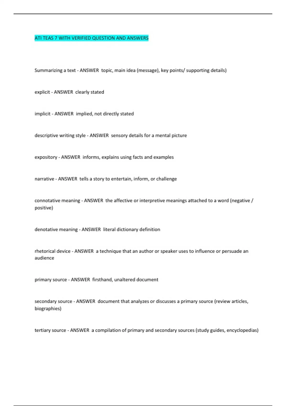 ATI TEAS 7 WITH VERIFIED QUESTION AND ANSWERS