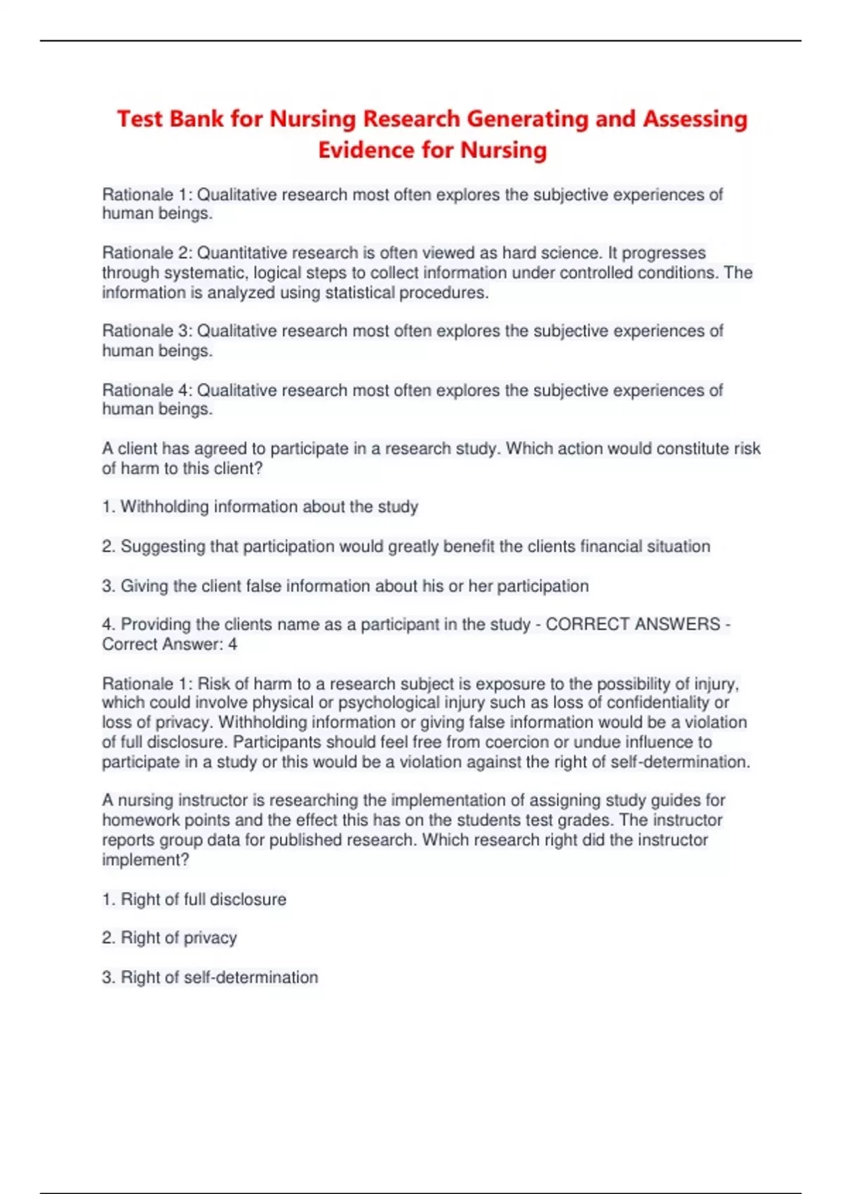 4. Providing the clients name as a participant in the study - CORRECT ANSWERS -