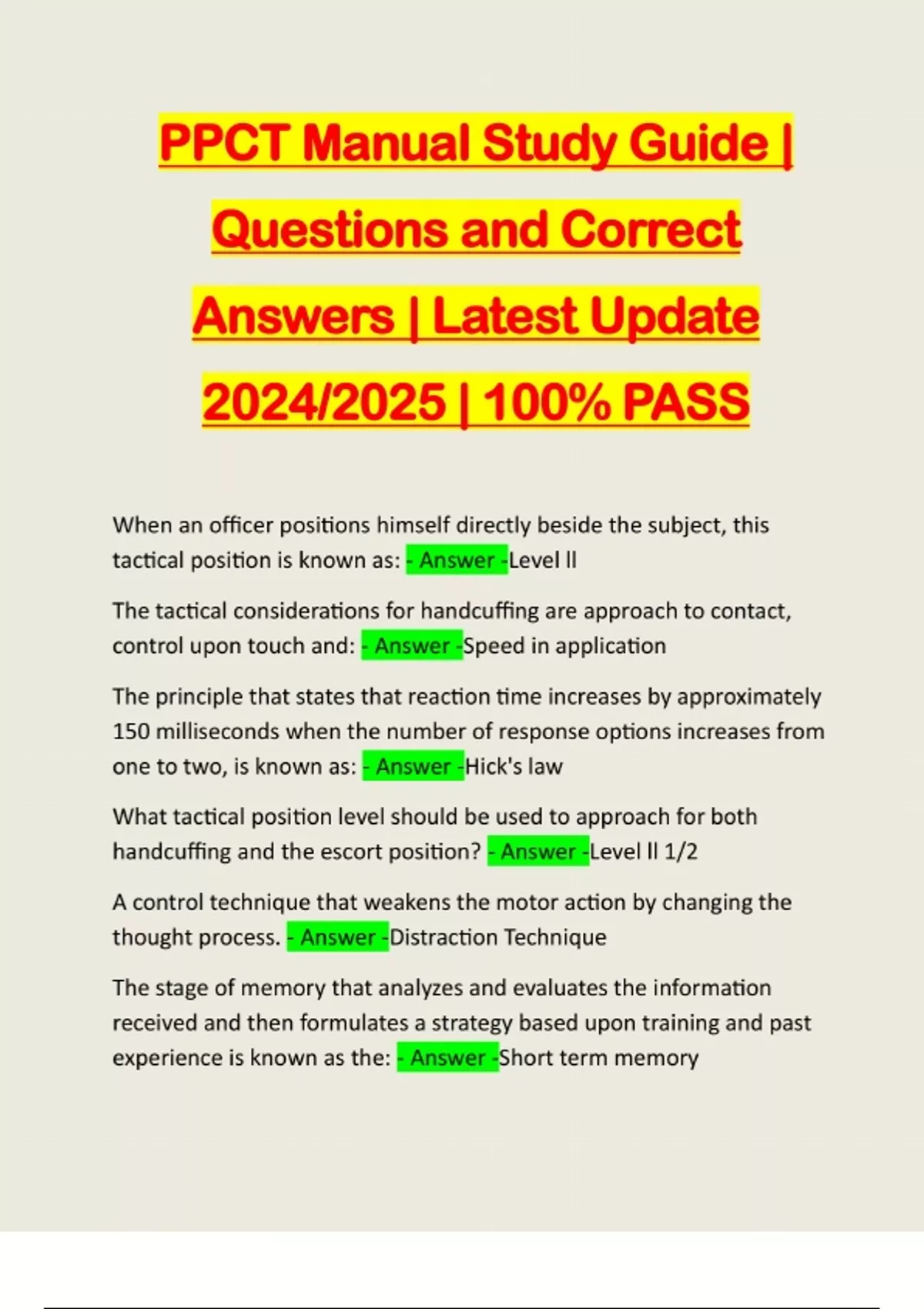 PPCT Manual Study Guide | Questions and Correct Answers | Latest Update 2024/2025 | 100% PASS