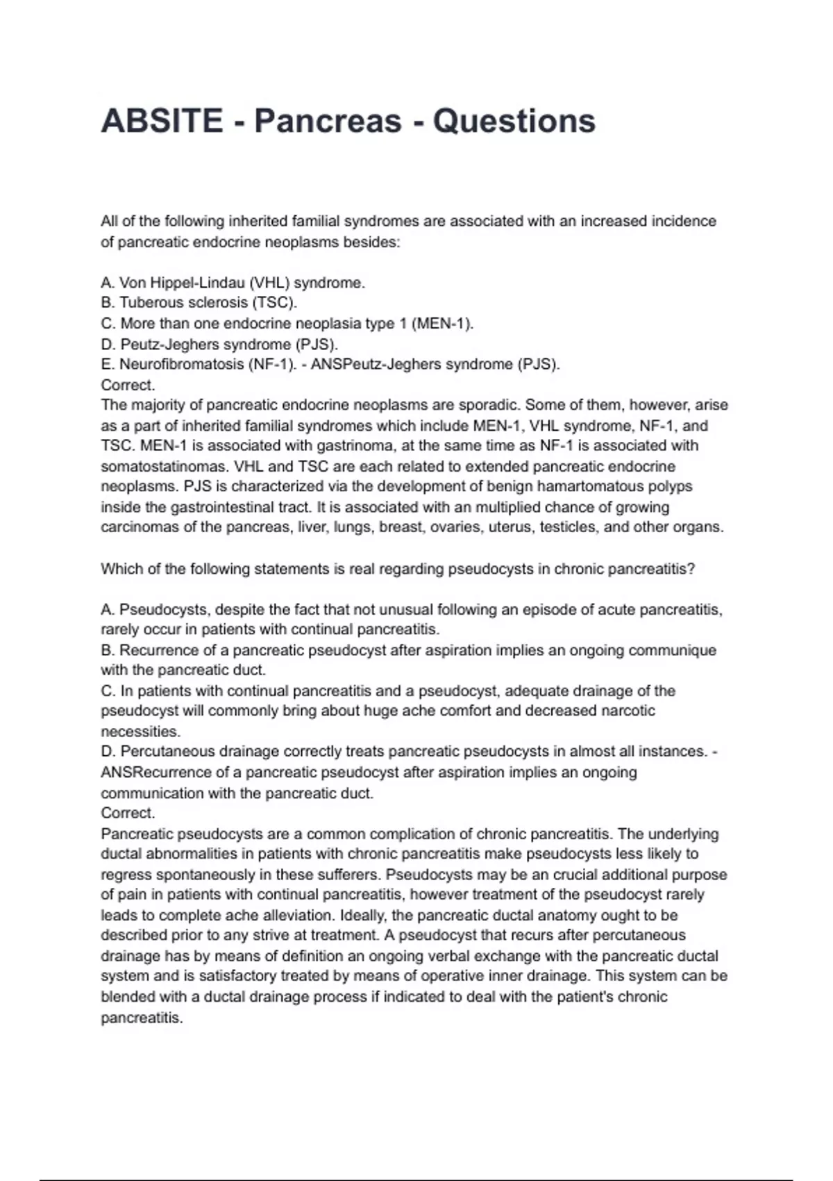 ABSITE - Pancreas - Questions and answers rated A+2025/2026