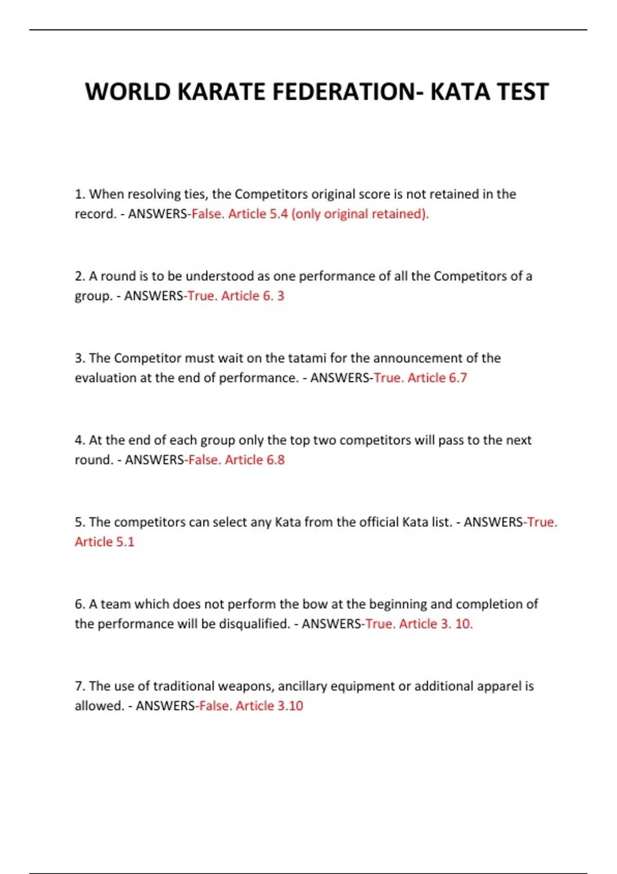 WORLD KARATE FEDERATION- KATA TEST QUESTIONS AND ANSWERS 2024