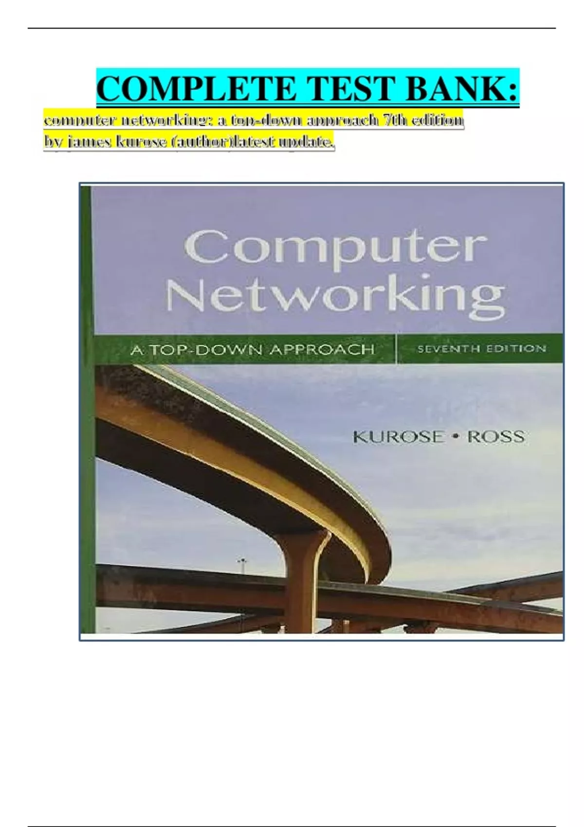 COMPLETCOMPLETE TEST BANK: computer networking: a top-down approach 7th edition by james kurose (author)latest update. E TEST BANK: computer networking: a top-down approach 7th edition by james kurose (author)latest update.