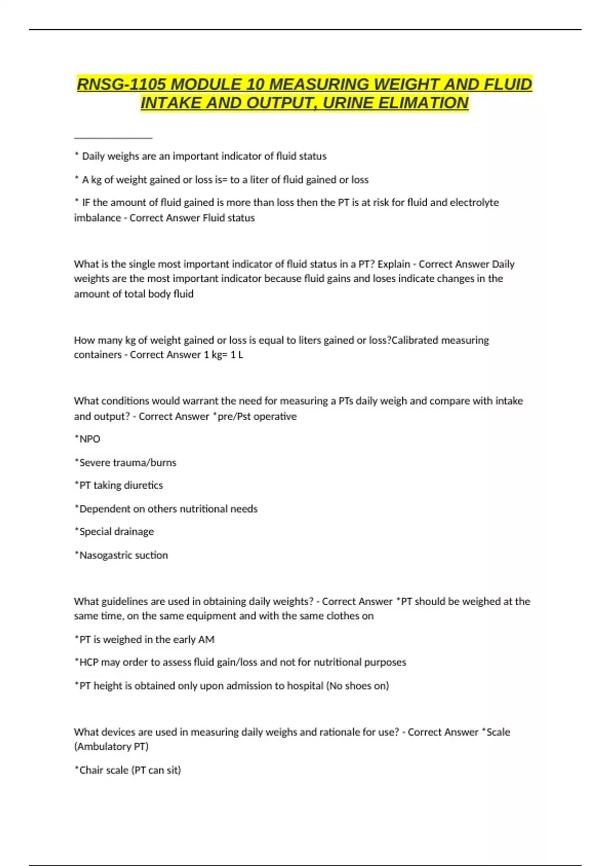 What guidelines are used in obtaining daily weights? - Correct Answer *PT should be weighed at the