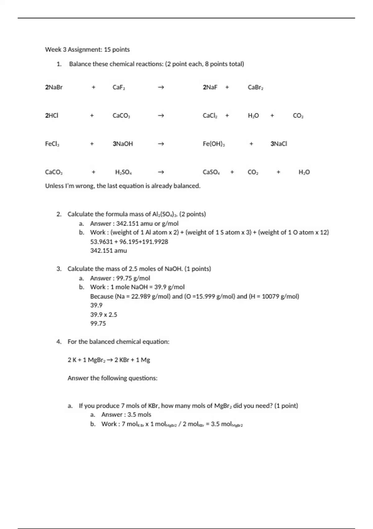 3. Calculate the mass of 2.5 moles of NaOH. (1 points)