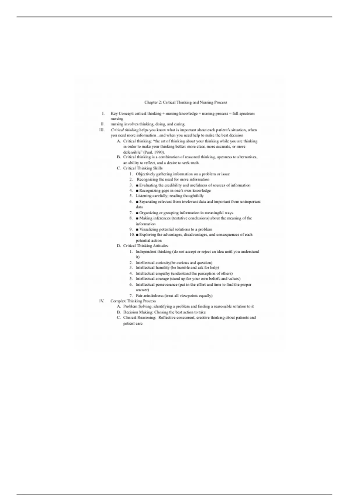 This is a comprehensive and detailed summary on Chapter 2; critical thinking and nursing process. *Essential Study Material!!
