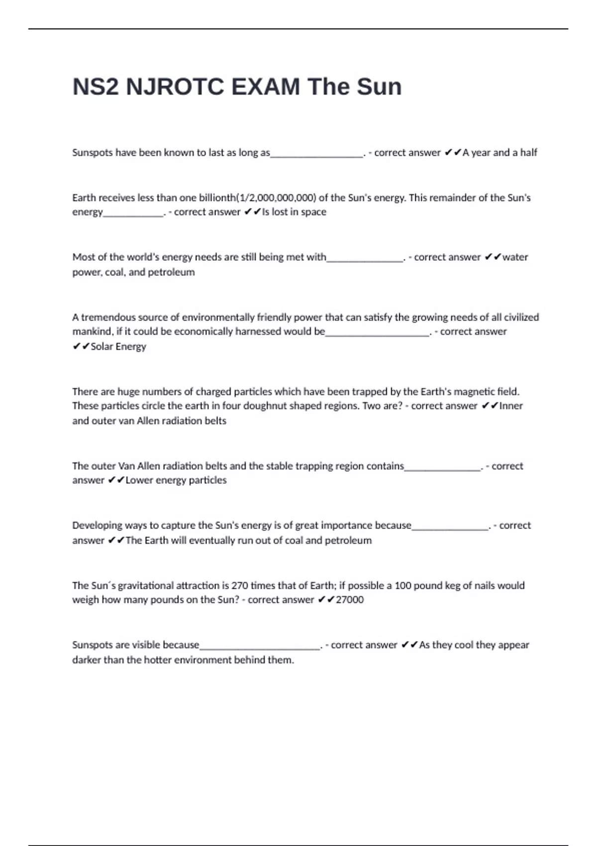 NS2 NJROTC EXAM The Sun questions and correct answers A+ rated