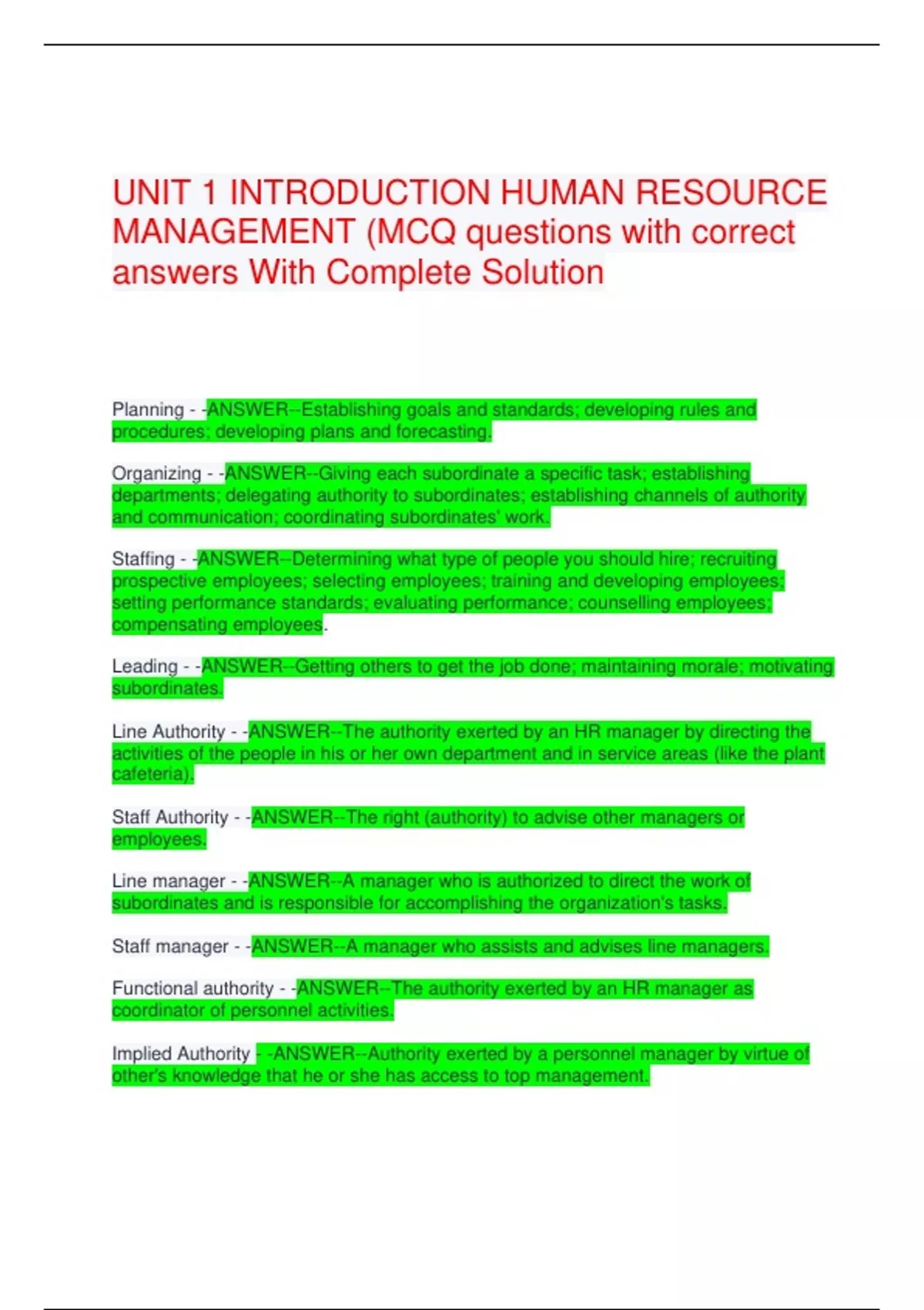 MANAGEMENT (MCQ questions with correct