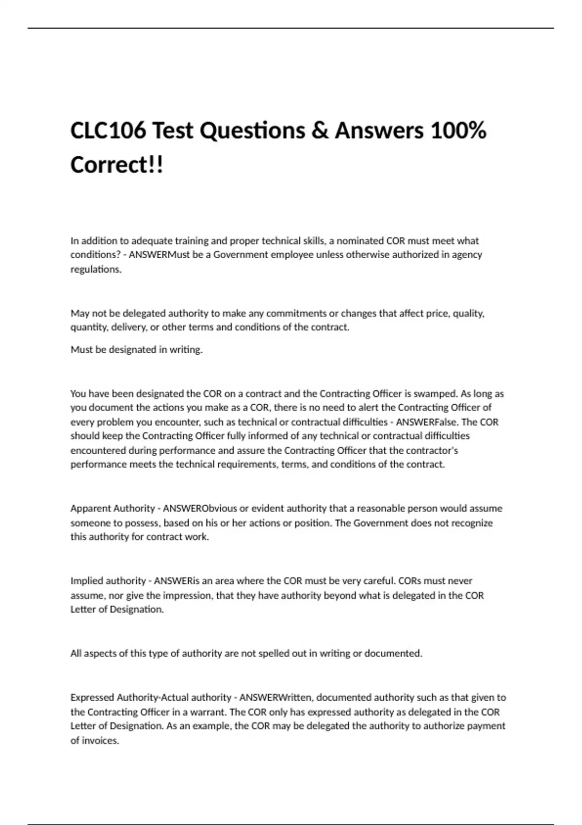 Implied authority - ANSWERis an area where the COR must be very careful. CORs must never